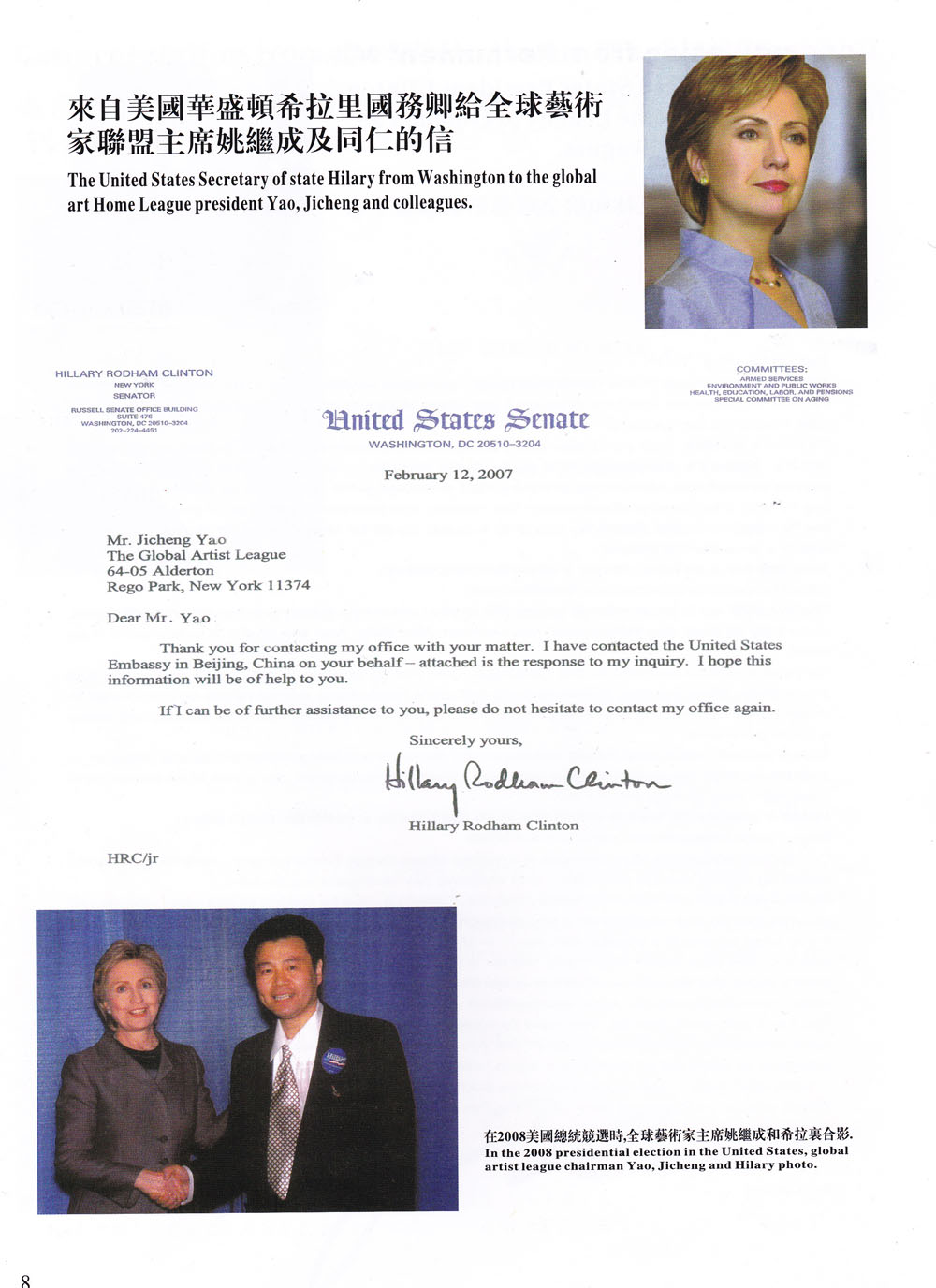 給全球藝術家聯盟主席姚繼成及同仁的信